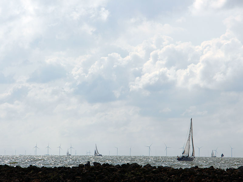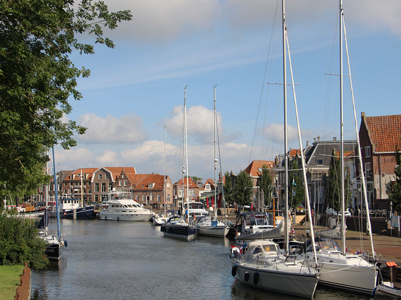 Deshalb entschlossen wir gleich durch die Lorenzschleuse und den Kornwederzand in das Wattenmeer zu fahren. An einer Windräder-Allee, Sandbänken und Seerobben vorbei, liefen wir spät am Abend in Harlingen – Frysland ein. Im Zuiderhafen legten wir dann im Päckchen mitten in der Stadt an, bei den historischen Kaufmanns Häusern und Geschäften.