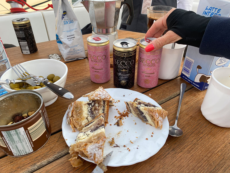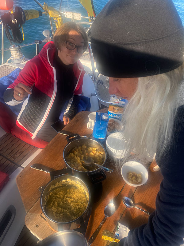 Schiffsbesichtigung, Kojen Einteilung, gemeinsame Planung für die nächsten Tage und ein Gläschen Wein rundeten den ersten Tag ab.