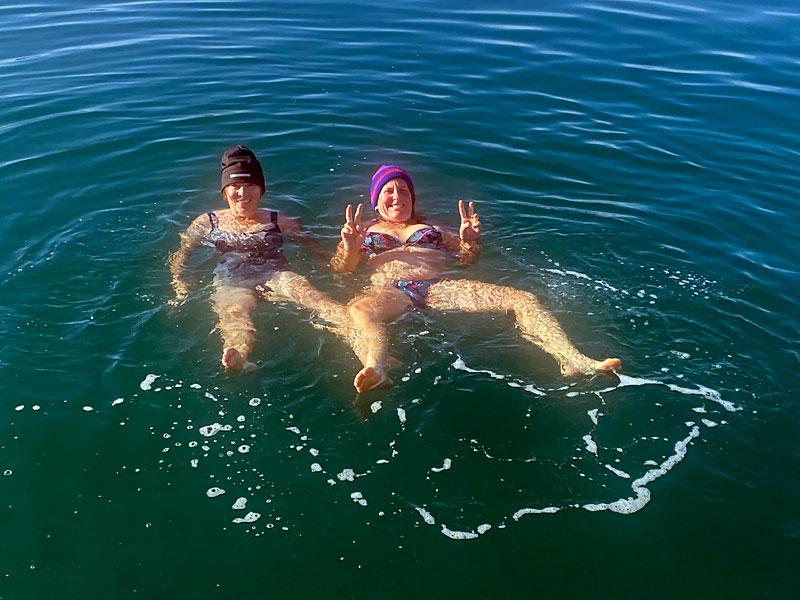 Drei ganz unerschrockene Mädels ließen es sich auch nicht nehmen im kühlen Nass nach Neptun zu schauen und Salzwasser auf der Haut zu spüren – das Ganze allerdings mit Wollmütze.
